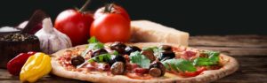 Tomatensauce, Mozzarella, Hinterschinken, frische Champignons, Artischocken, Oliven, Oregano